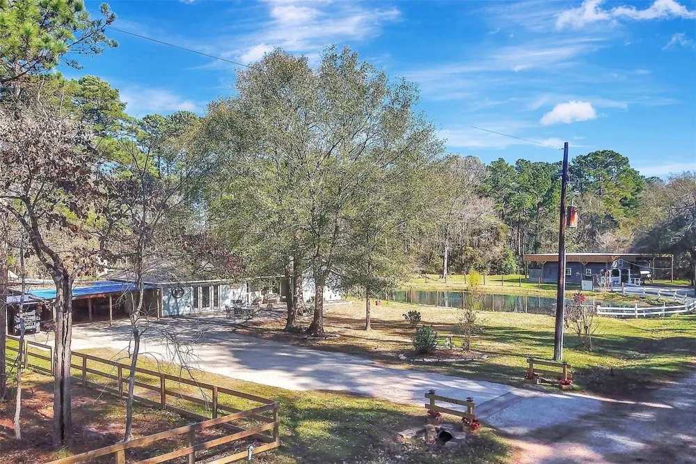 Discover the country charm of 2 lots (1.48+/- acres) on cul-de-sac street with a spacious home featuring 3 bedrooms & 2 full baths, split floorplan & 2 living areas, designed for comfort and easy living. Bar in den stays. Kitchen has a stunning wood countertop extending to a table with matching chairs & bench. Relax by the private pond or outdoor fireplace while entertaining guests in style with over 950sf of covered outdoor living & entertaining space, also includes a separate bar & grilling area. Hot tub can stay or go. A fully appointed guest house provides flexible options for extended family & visitors. Also includes a 364+/-sf Beauty Shop that could be converted to another guest house, craft room or workshop. Above ground pool stays, can be removed for you. 40x40 Boat & RV cover, also covering beauty shop. All this is close to downtown Magnolia and just minutes to 249 Toll Road/Aggie Expressway. This property offers peaceful country living without sacrificing accessibility.