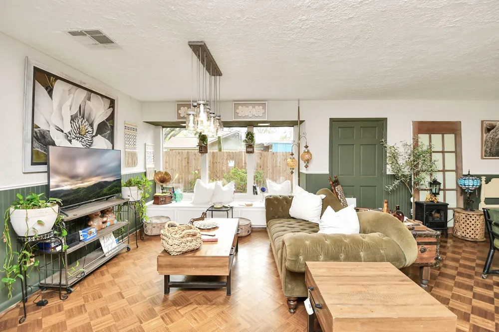 Tucked away on nearly one acre, 1503 Woodlawn St is a rare blend of character, charm, and peaceful natural beauty. Just under 1600 square feet, this two bedroom, two bath home is filled with warmth and timeless appeal. Rich brown wood floors, striking green walls, and abundant natural light create an inviting, storybook atmosphere you’ll feel the moment you step inside. Enter through a quaint courtyard featuring a serene koi pond, setting the tone for the charm that continues throughout. With no back neighbors and a gentle creek just beyond the property, the setting is private, quiet, and surrounded by nature. If you’ve been searching for something truly special with soul and serenity, this is the one. Schedule your private tour today.