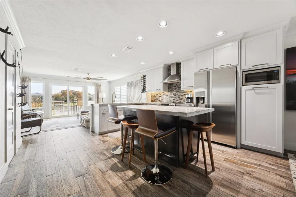 Stylishly updated and full of character, this 2-bedroom, 1.5-bath residence at 1900 Lakeside Dr, Seabrook, TX offers modern comfort with thoughtful design throughout. The open-concept main level features a sleek kitchen with stainless steel appliances, contemporary cabinetry, stone countertops, and a large island that flows seamlessly into the living area—ideal for entertaining. Natural light fills the home, highlighting designer finishes, upgraded lighting, and custom details. Upstairs bedrooms provide privacy and comfort, while the bathrooms showcase modern fixtures and spa-inspired touches. Enjoy outdoor relaxation with tranquil views, plus the convenience of a private 2-car covered carport. Ideally located near waterfront attractions, dining, and shopping, this home blends style, function, and location.