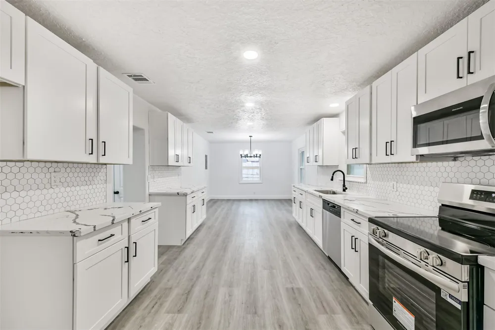 Welcome to 2121 County Road 892 in Alvin, TX — a fully renovated 3-bedroom, 2-bath home offering 1,350 sq. ft. of modern comfort on nearly half an acre. Enjoy peace of mind with brand-new upgrades throughout: foundation with warranty, roof (2025), HVAC (2025), all new PEX plumbing and water heater, and complete electrical updates and new windows as well. The spacious kitchen features quartz countertops and ample cabinetry, while both bathrooms showcase matching quartz finishes. Interior highlights include waterproof wood laminate flooring, fresh carpet, and new paint inside and out. Outside, relax under beautiful mature trees, utilize the large backyard shed, and create your own outdoor oasis. With no HOA, no restrictions, a low 1.84% tax rate, and a non-flood zone location, this move-in ready gem offers the best of comfort, freedom, and convenience—close to everything Alvin has to offer. This home has it all, schedule your showing today!