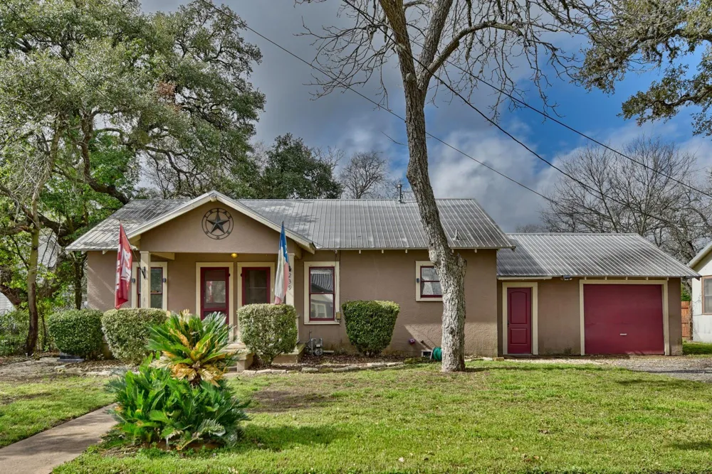 Discover this delightful mid-century charmer nestled in the heart of La Grange, Texas. With an approximate 1,580 sq ft of combined living space, this unique property offers a blend of classic design and modern convenience, ideal for those who appreciate character and functionality. The main house spans an approximate 1,260 sq ft, featuring 2 spacious bedrooms and 1 well-appointed bath. Original wood floors flow throughout, adding timeless appeal to every room. Culinary enthusiasts will enjoy the vintage charm of the kitchen. Adding versatility, a rough 320 sq ft addition provides a third bedroom with an en-suite bath, accessible through a separate entrance—ideal for guests or an investment opportunity. The stucco exterior and durable metal roof enhance the home's durability and style, ensuring years of worry-free living. Situated only two blocks from local amenities including a school, HEB, and downtown shops and restaurants, this property embodies convenience and ease of living.