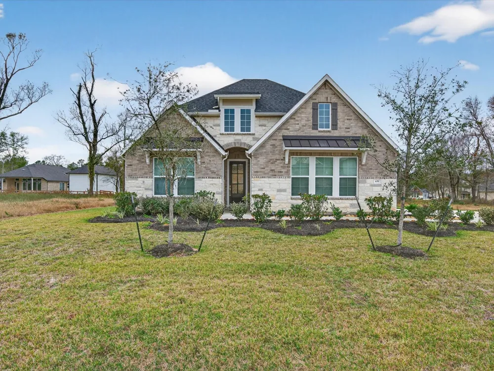 Welcome home to Beazer's most sought after plan - The McKinney, nestled within Magnolia's best kept secret of Timber Hollow! This 4 bed/3.5 bath home spans over 2,500 sq ft showcasing an open-concept layout filled with natural light & high ceilings throughout. The living room features wall of windows overlooking the backyard open to the kitchen complete with a large island, quartz counters, stainless appliances, under-cabinet lighting, ample cabinet space, & walk-in pantry. The home office is enclosed by French doors, & wood-look tile flooring extends through all common areas. The primary suite is a peaceful retreat lined in windows, fantastic oversized walk-in shower, dual vanities/sinks, & generous closet space. Enjoy relaxing & entertaining outdoors on the extended covered patio w/gas connection for future outdoor kitchen. Oversized garage w/storage space. Timber Hollow offers a community lake, rolling hills, and walking trails. Zoned to acclaimed Magnolia ISD. Don't miss this one!